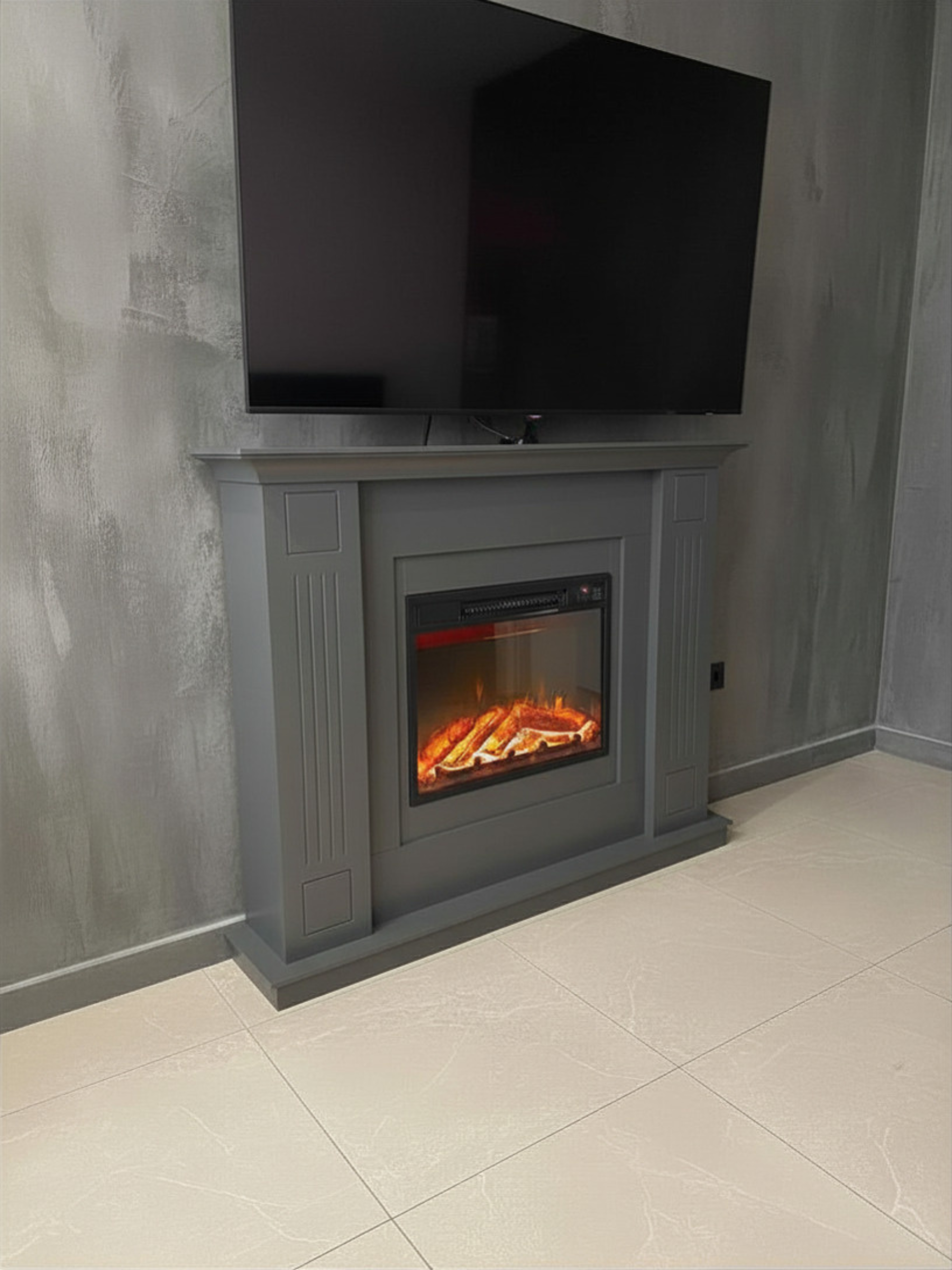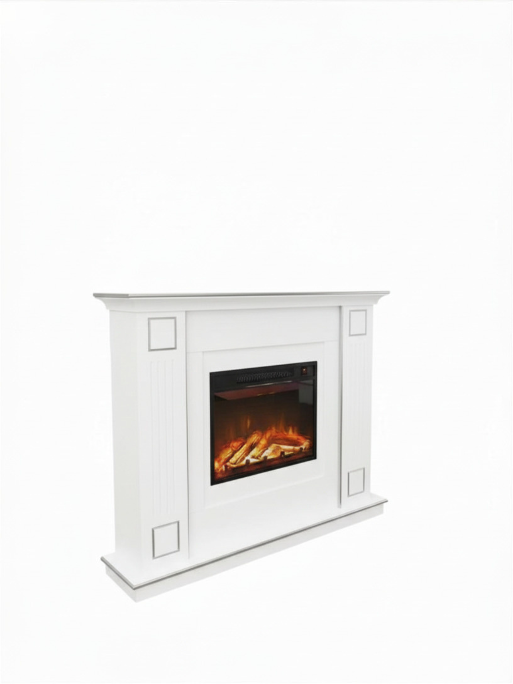 caminetto elettrico compreso di mobile in forex 10mm base superiore in trucilato nobilitato bianco, arricchito con decori in pvc compatto, termoconvettore con effetto fiamma realistica, effetto calore reale da 1000 a 2000 watt Telecomando, Timer settimanale, libretto istrizioni in italiano 12 mesi di garanzia ( per il solo termoconvettore.